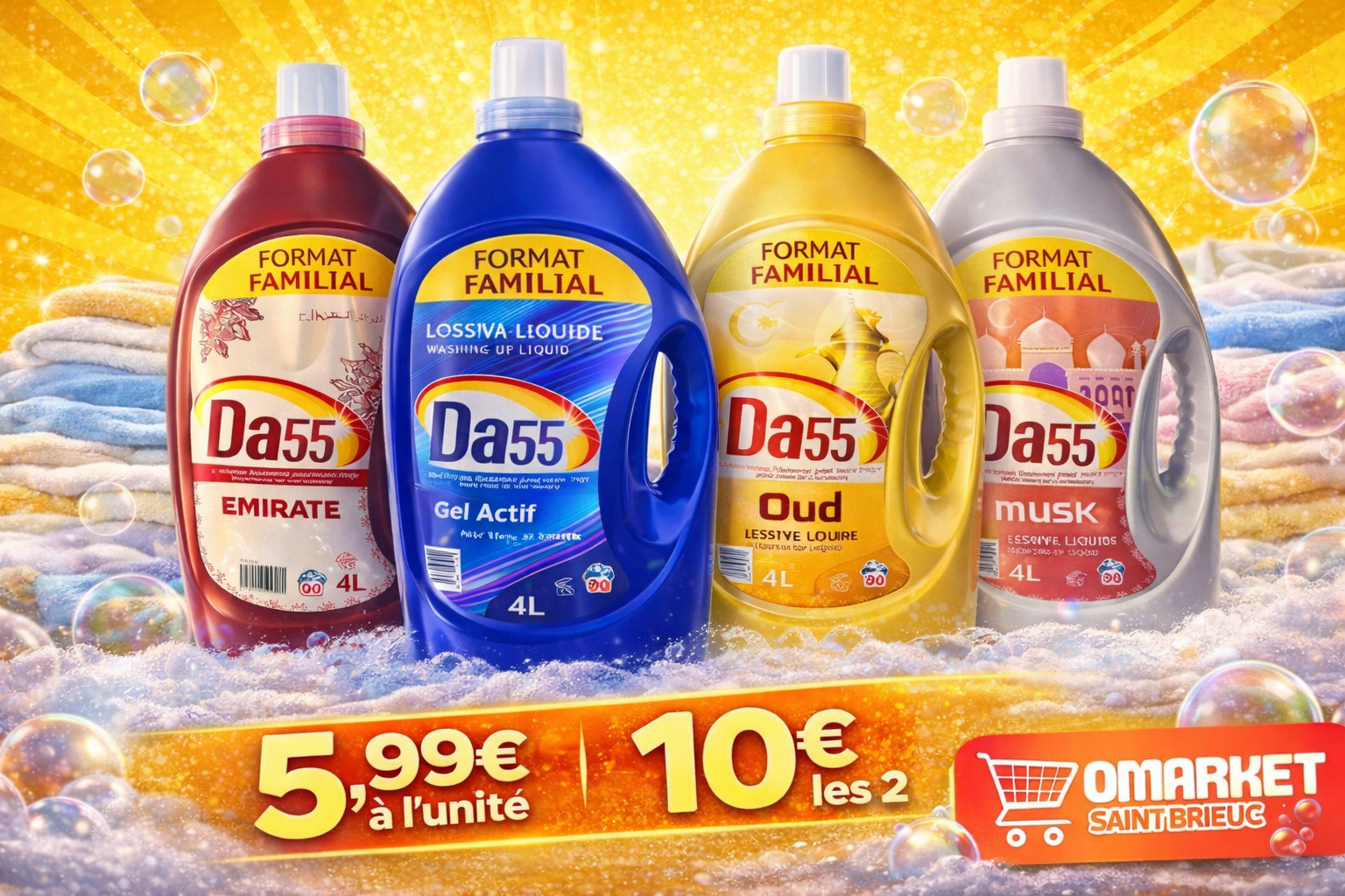Avec son format familial de 4 litres, la lessive DA55 Oud permet de réaliser de nombreux lavages et constitue une solution pratique et économique pour l’entretien du linge de toute la maison.