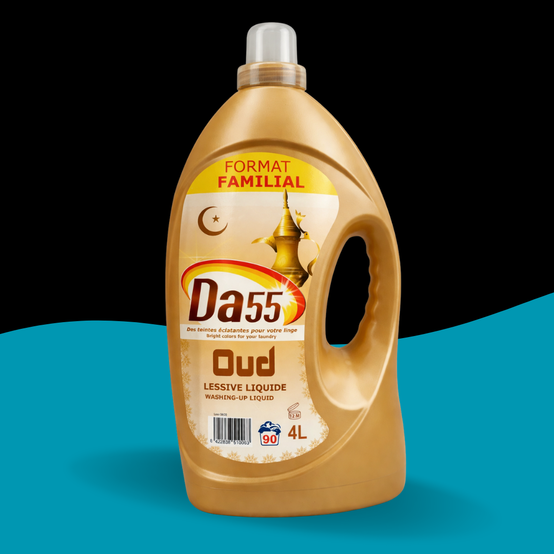 La lessive liquide DA55 Oud en format familial 4 litres est conçue pour offrir un lavage efficace tout en laissant sur votre linge un parfum élégant inspiré des fragrances orientales. Sa formule liquide agit en profondeur pour éliminer les taches du quotidien et garder les textiles propres et frais lavage après lavage.